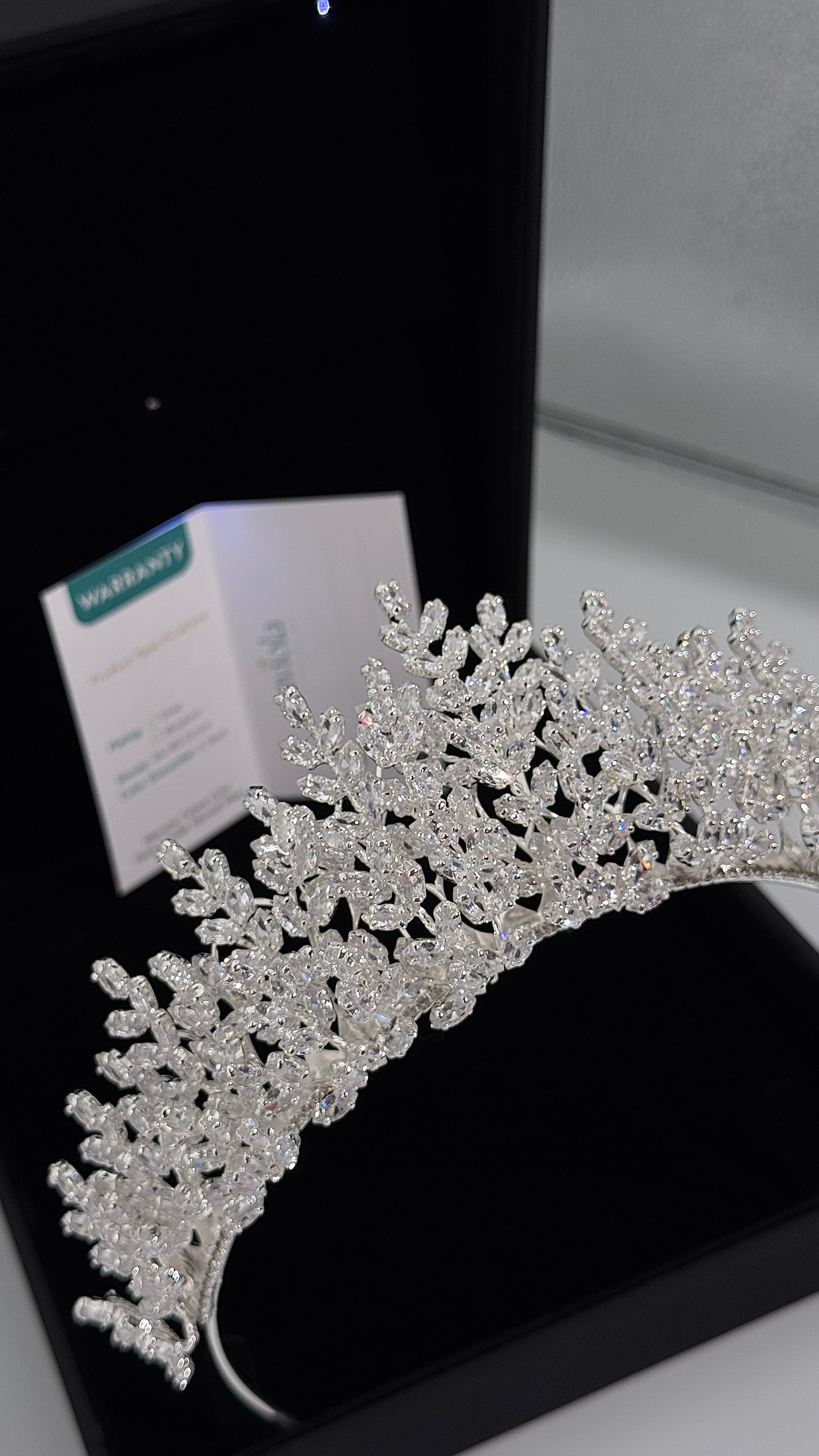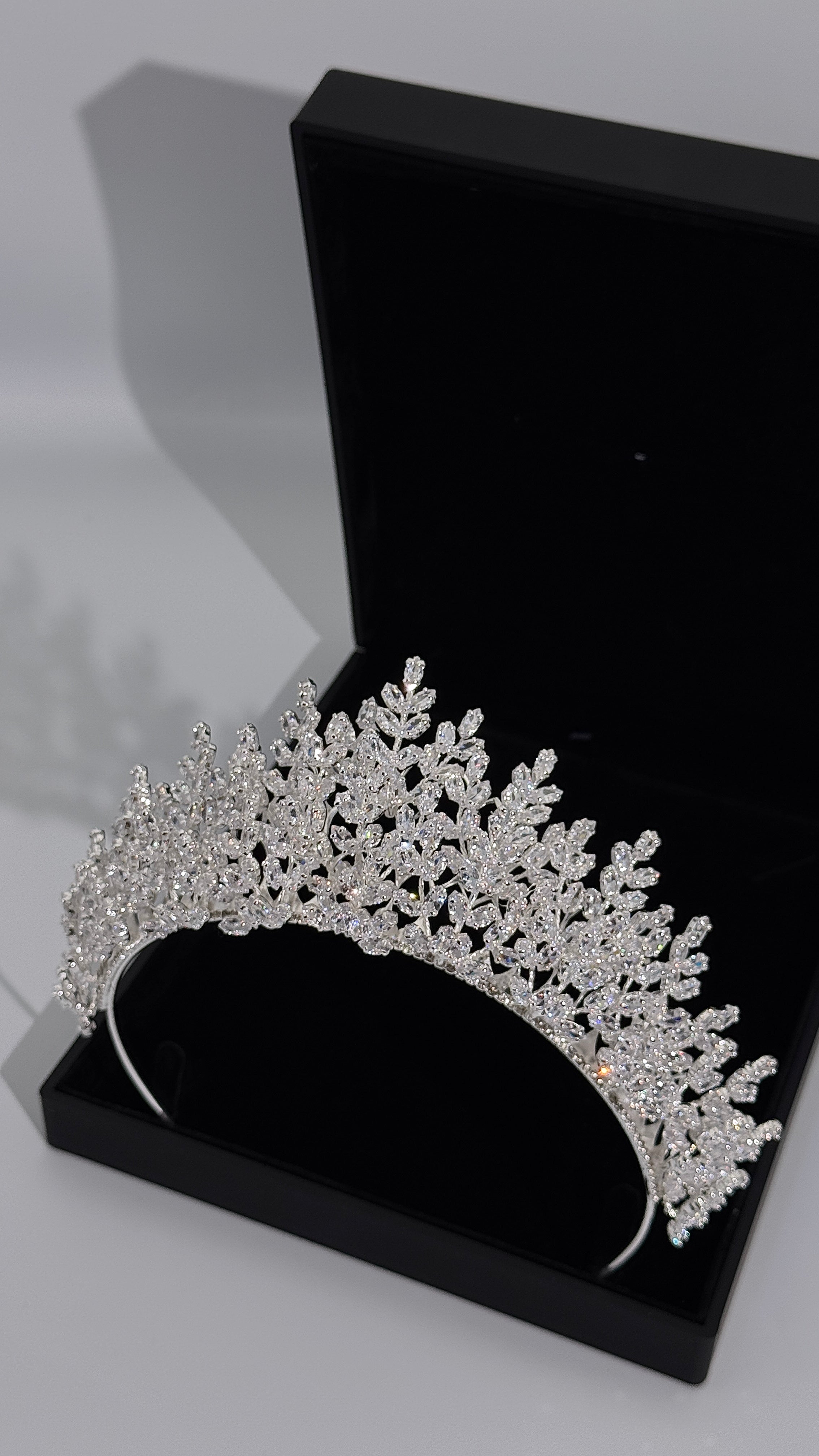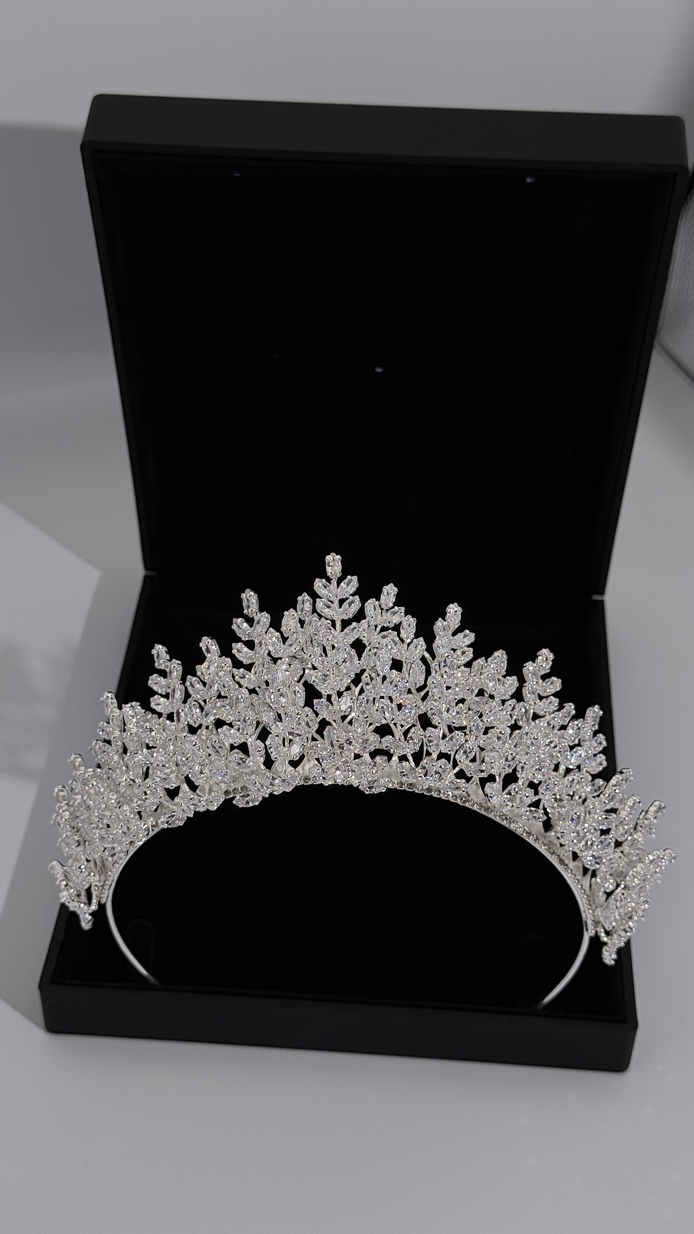 ✨ Design: Elegant botanical-inspired crown with refined crystal detailing